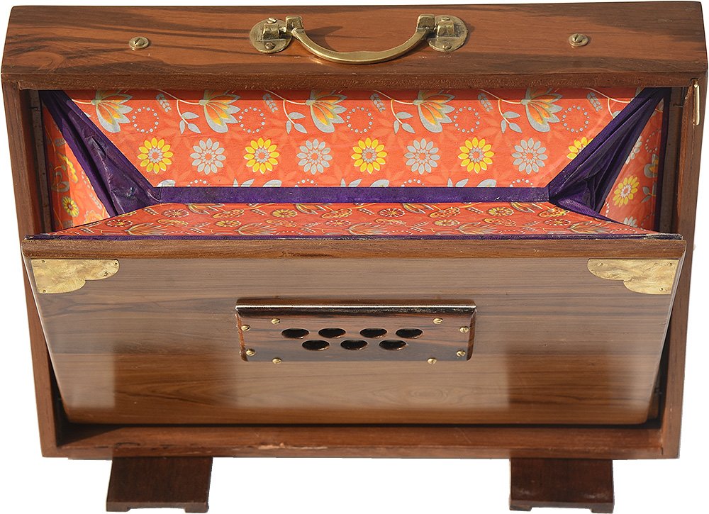 Shruti Box Teak Wood Size (16″ X 12″ X 3″) Inches- 440 Hz, Gig Bag, Natural Color, Key- C To C (Lower Tone), Surpeti, Yoga, Bhajan, Kirtan, Mantra, Drone, Vocal