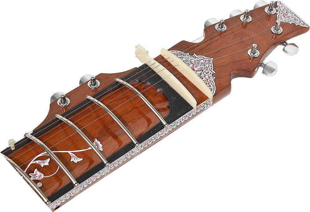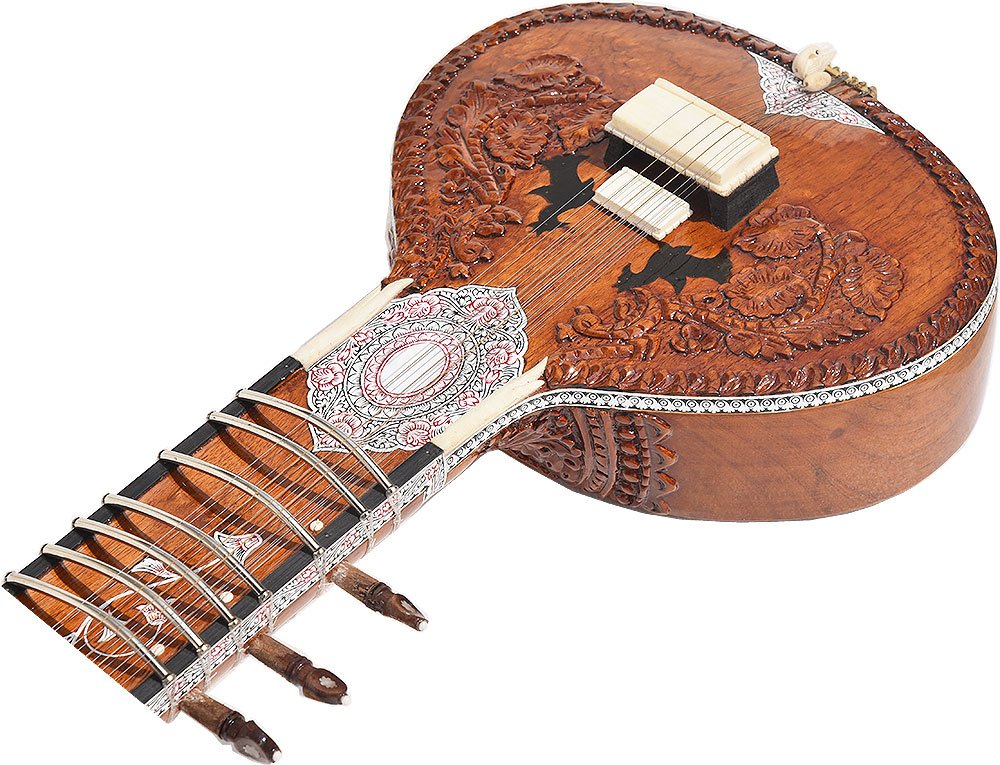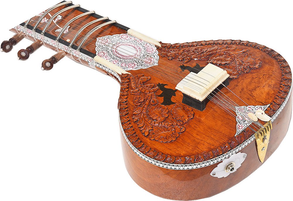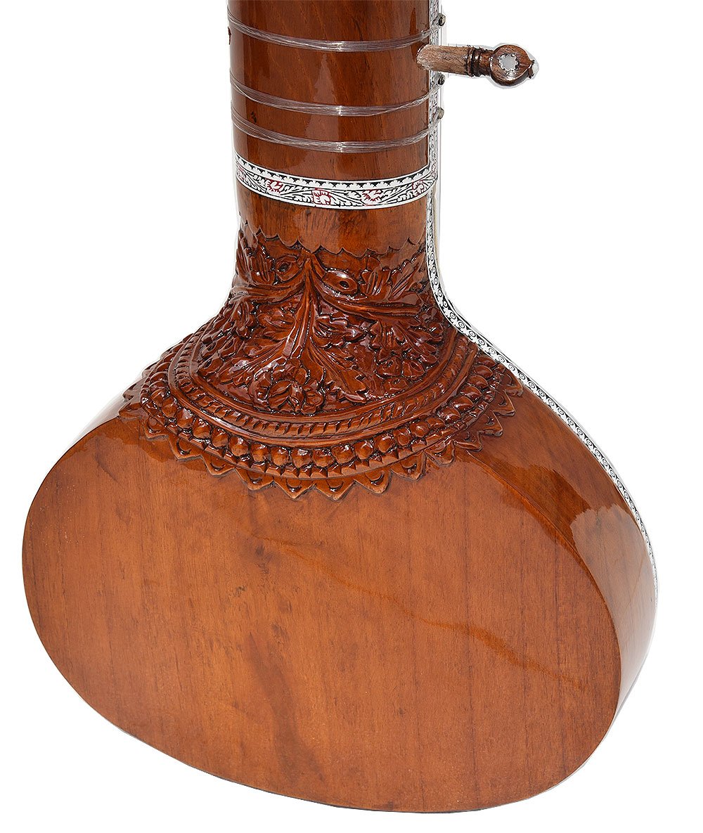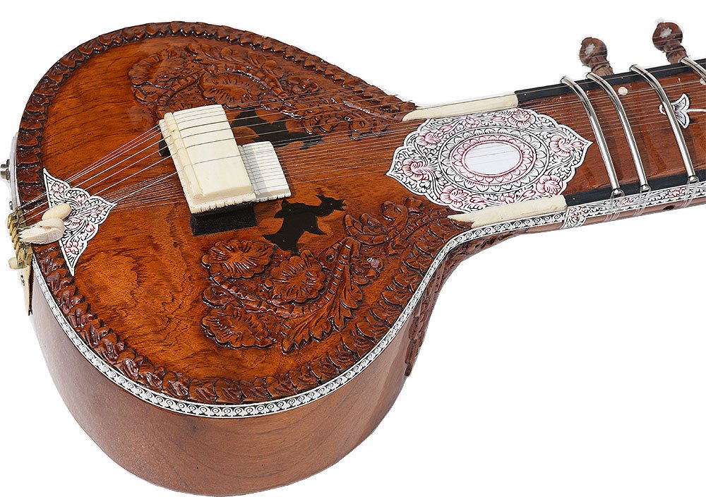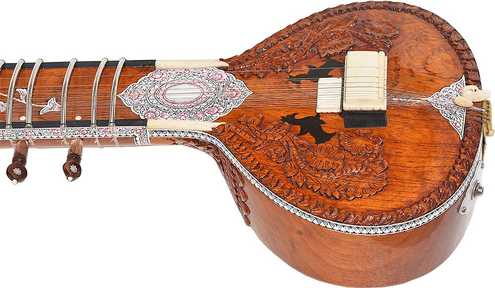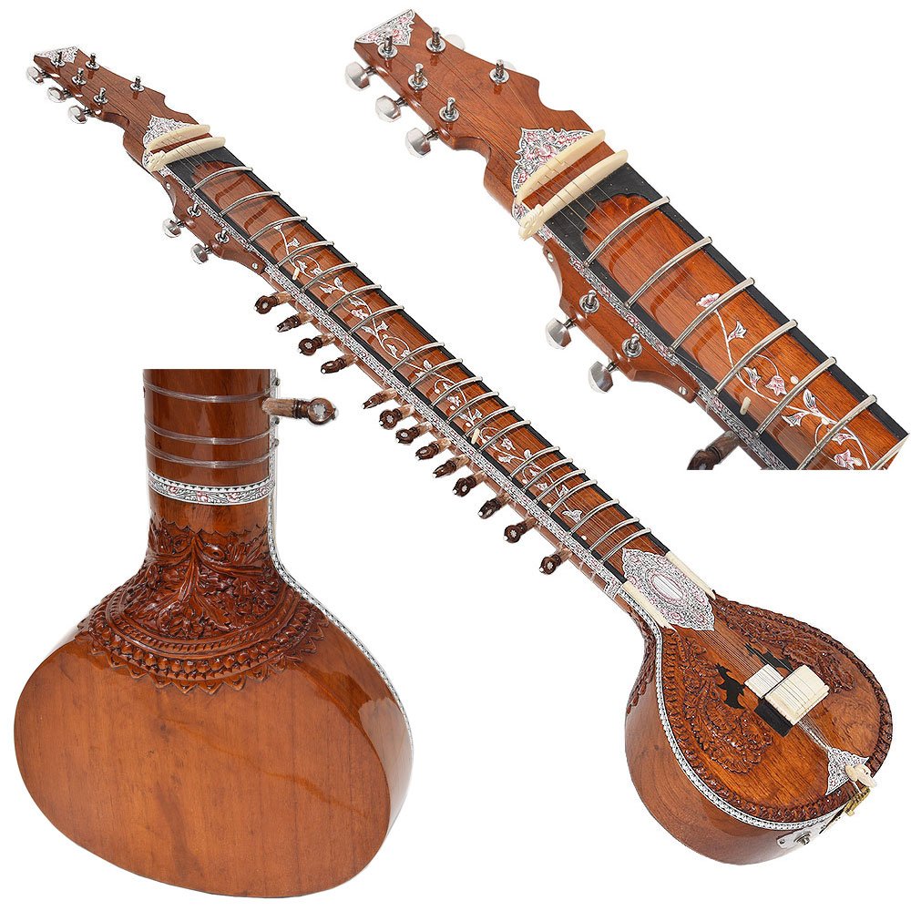 The sitar is a plucked stringed instrument predominantly used in Hindustani classical music, where it has been ubiquitous since the Middle Ages. Artists such as Ravi Shankar & Vilayat Khan have popularised this instrument around the world. It derives its resonance from sympathetic strings, a long hollow neck and a gourd or Flat Wooden resonating chamber.